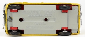 A difficult model to find (issued 1966). Vivid yellow Morris Mini in very close to mint condition, which may be securely fastened to the inner by means of the original fixings. Shaped spun wheels are shiny. Original tyres are supple and well-shaped.