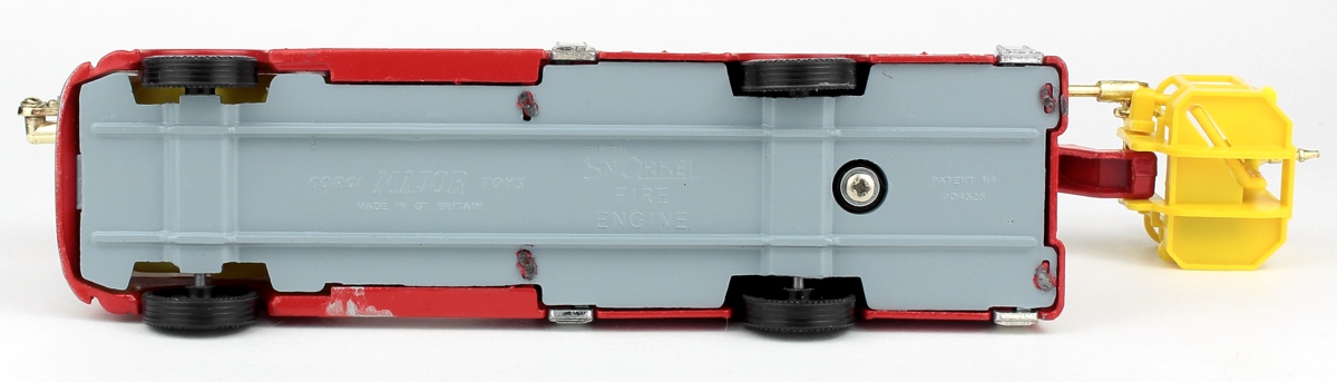 A popular Corgi model from the Major Packs Emergency Vehicle range of toys. The Simon Snorkel fire engine was made between 1964-74, with a Bedford cab, 6 firemen, water cannon, extending and rotating boom. This model presents very nicely with bright untarnished supports for the boom and a vivid lustre to the original paint finish.