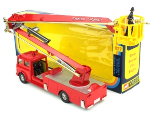 Corgi 1127 Simon Snorkel Fire Engine. Very near mint /boxed. Scarce late issue with 8-spoke one-piece wheels & tyres, gold booms & later shaped operating wheels. Card and cellophane 'Rainbow' box. With all 3 polystyrene packing pieces. From The Sheepcote Collection.