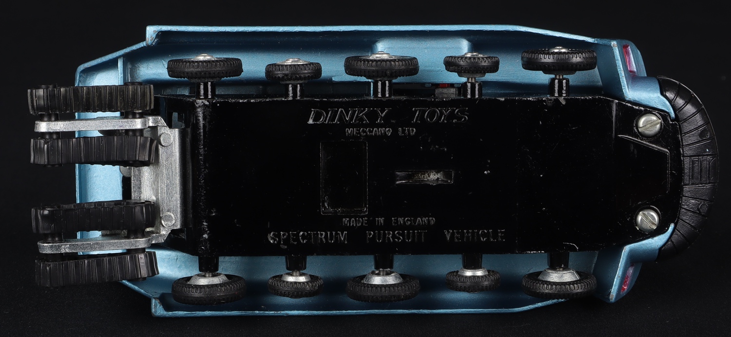 Spectrum Pursuit Vehicle by Dinky Toys, No.104. Very near mint/boxed. 2nd issue with white plastic cover on the door release mechanism on the roof. BLACK bumper and base. Scarce. Bubble pack box.With one owner from new!