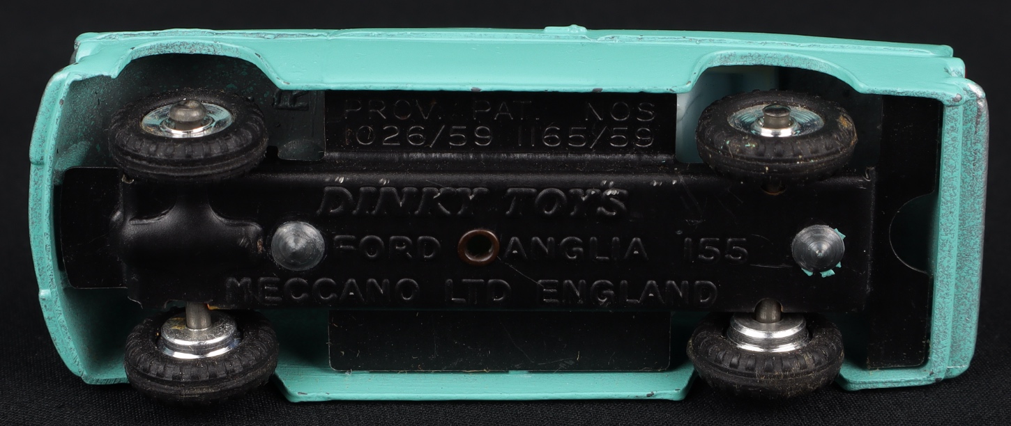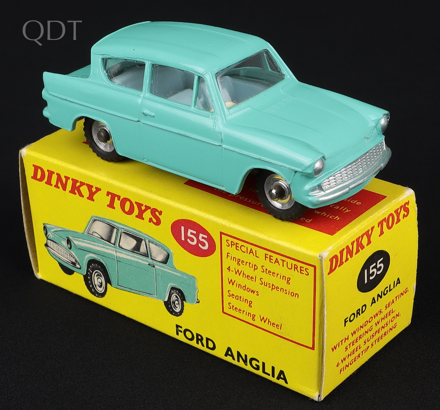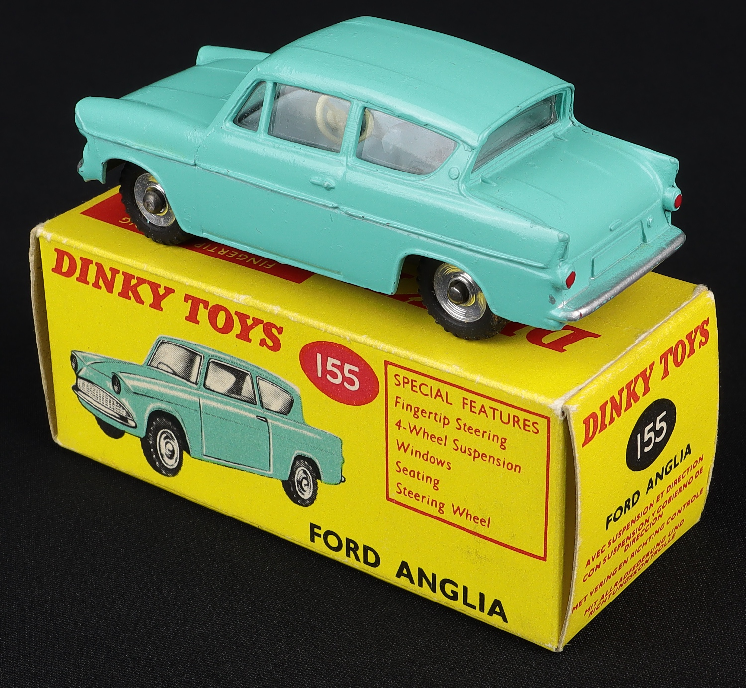 Ford Anglia by Dinky Toys, No. 155. Very near mint/boxed. Turquoise with more unusual pale blue interior. From The Heart of England Collection.