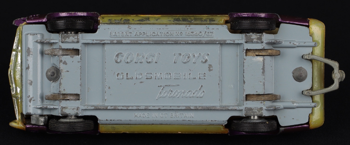 Oldsmobile Toronado by Corgi Toys, No. 276. Rare PRE-PRODUCTION issue in METALLIC PURPLE. Excellent/unboxed. As pictured in Corgi promotional brochure. Unique model from The Gower Collection. QDT starting bid £200. Please note that QDT apply 12.5% buyer's commission.