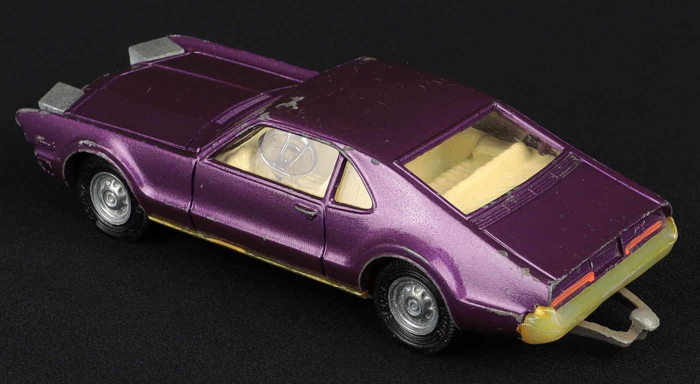 Issued between 1969-72, this is a (probably unique) pre-production example in metallic purple – and the colour of the version pictured in a period Corgi promotional leaflet: