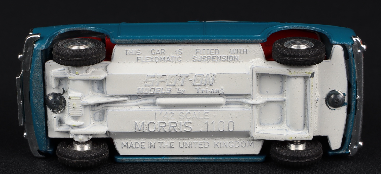 Austin A40 by Spot-on Models, No. 154. METALLIC GREEN & black, with RED interior. One-piece wheels and tyres. Scarce. Late issue. Near mint plus/boxed. From The Phenomenal Collection.