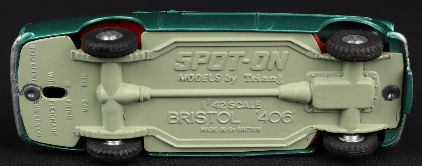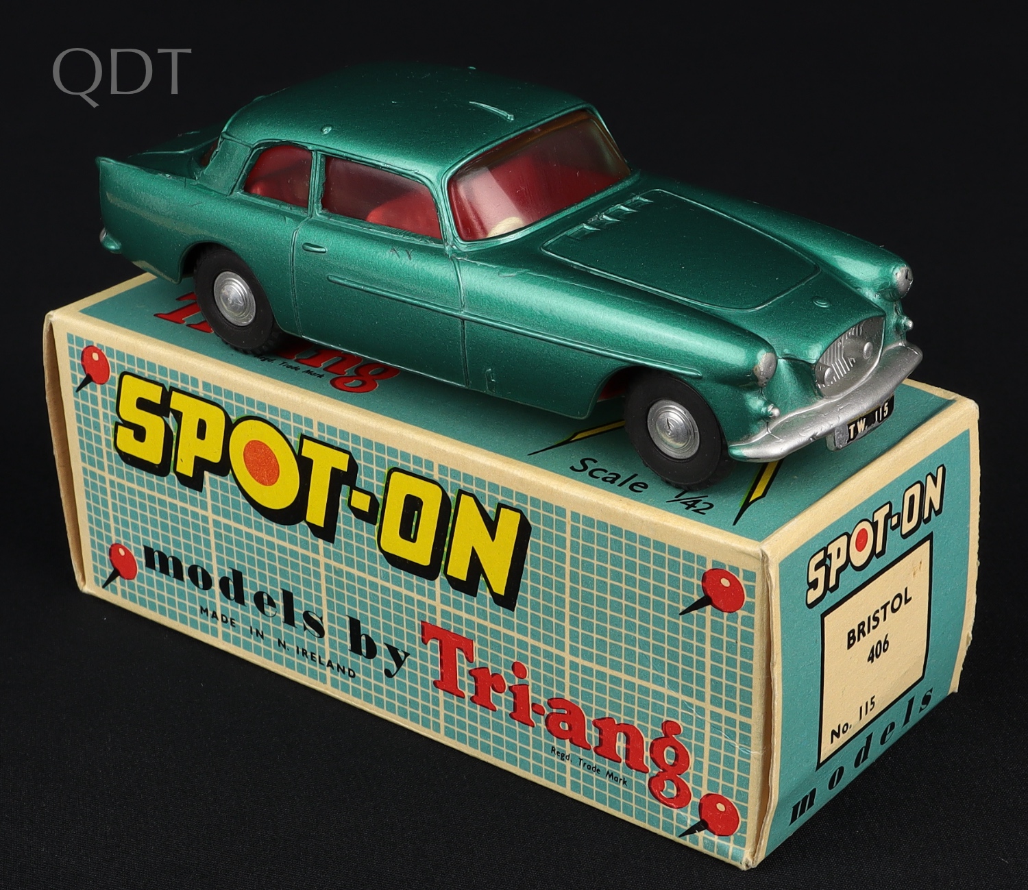 Bristol 406 by Spot-on Models, No. 115. Very near mint/boxed. EMERALD GREEN issue, red interior. With Picture Card. From The Heart of England Collection.