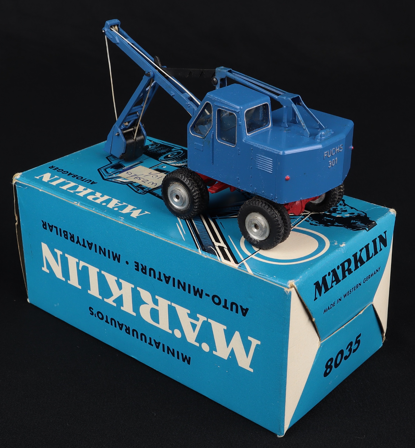 Autobagger Fuchs 301 by Marklin, No. 8035 . Mid-blue with shaped spun wheels. Very near mint/boxed, with packing card. Scarce. From The 25 Year Collection in California.