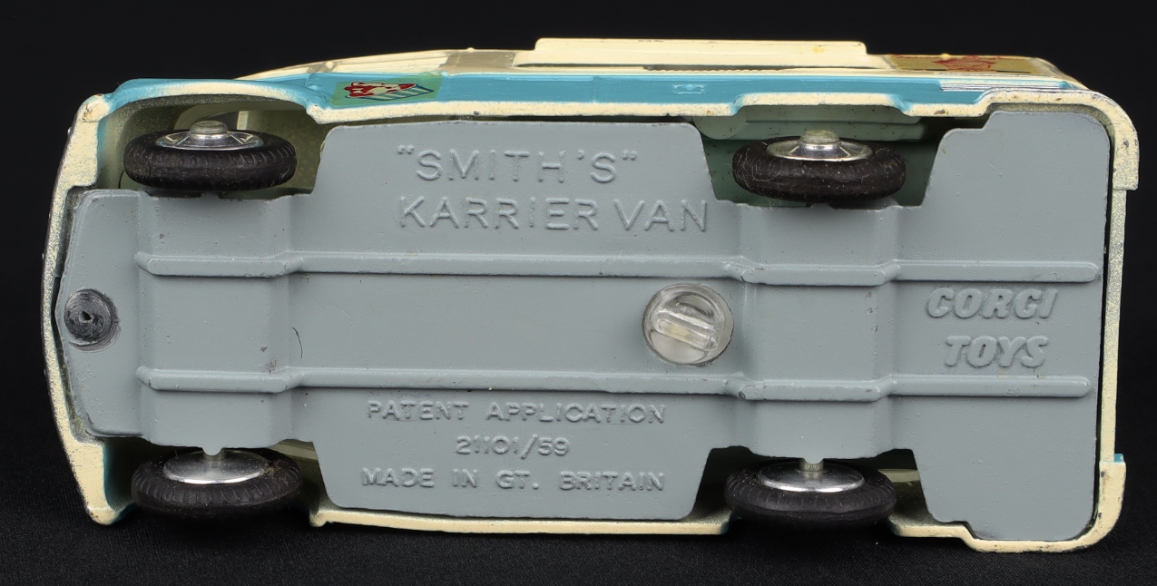 Issued between 1963-66, this popular ice cream van is in very close to mint condition, with complete detailed transfers throughout and spring suspension on all four wheels. Fine original tyres. Ice cream vendor will endlessly serve you with an ice cream cone through the sliding hatch at the front, if you turn the little knob on the baseplate.