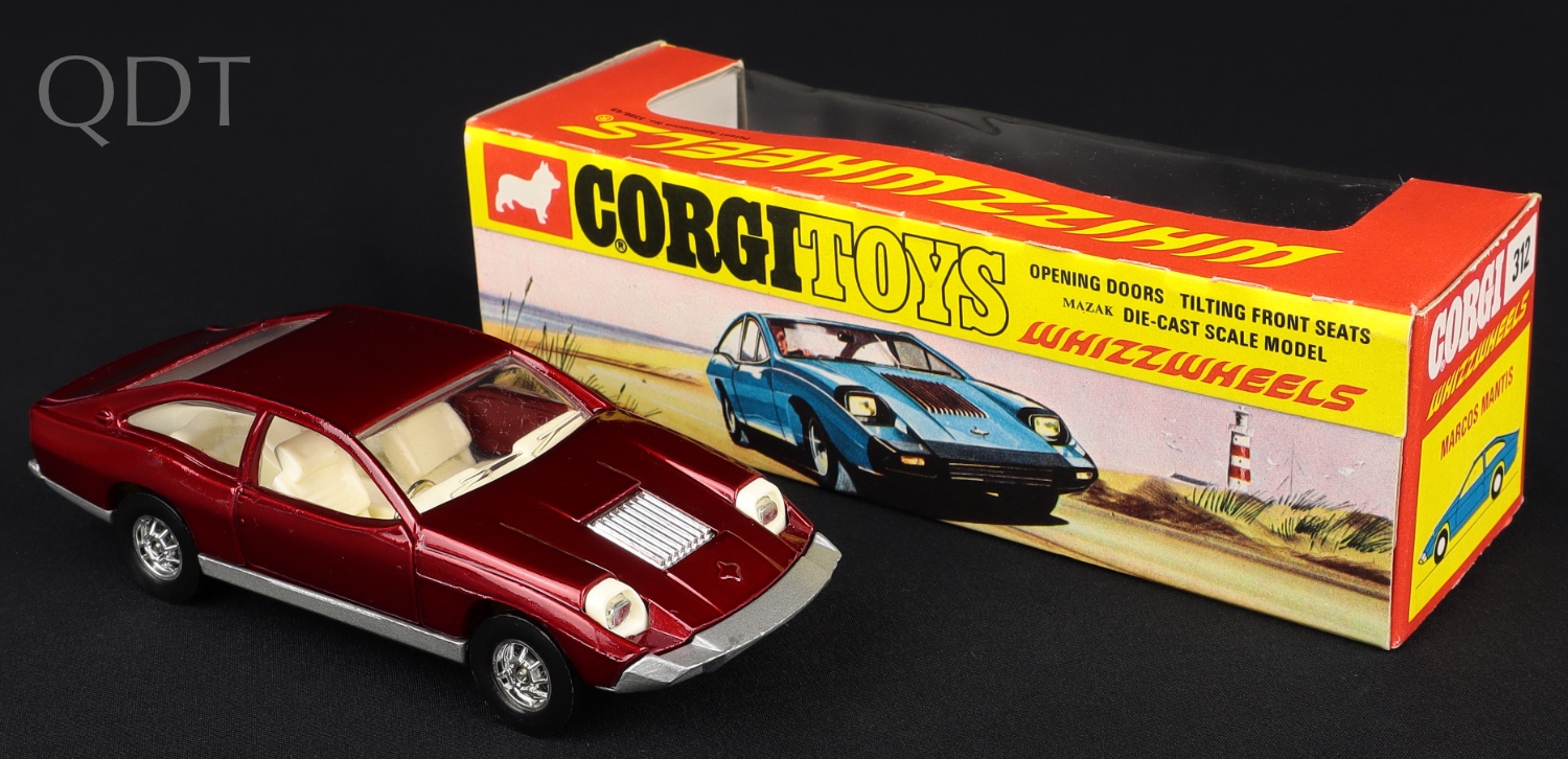 Marcos Mantis by Corgi Toys, No. 312. With SPOKED WHIZZWHEELS. Very near mint/boxed. Nice box! From The Elmer Collection.