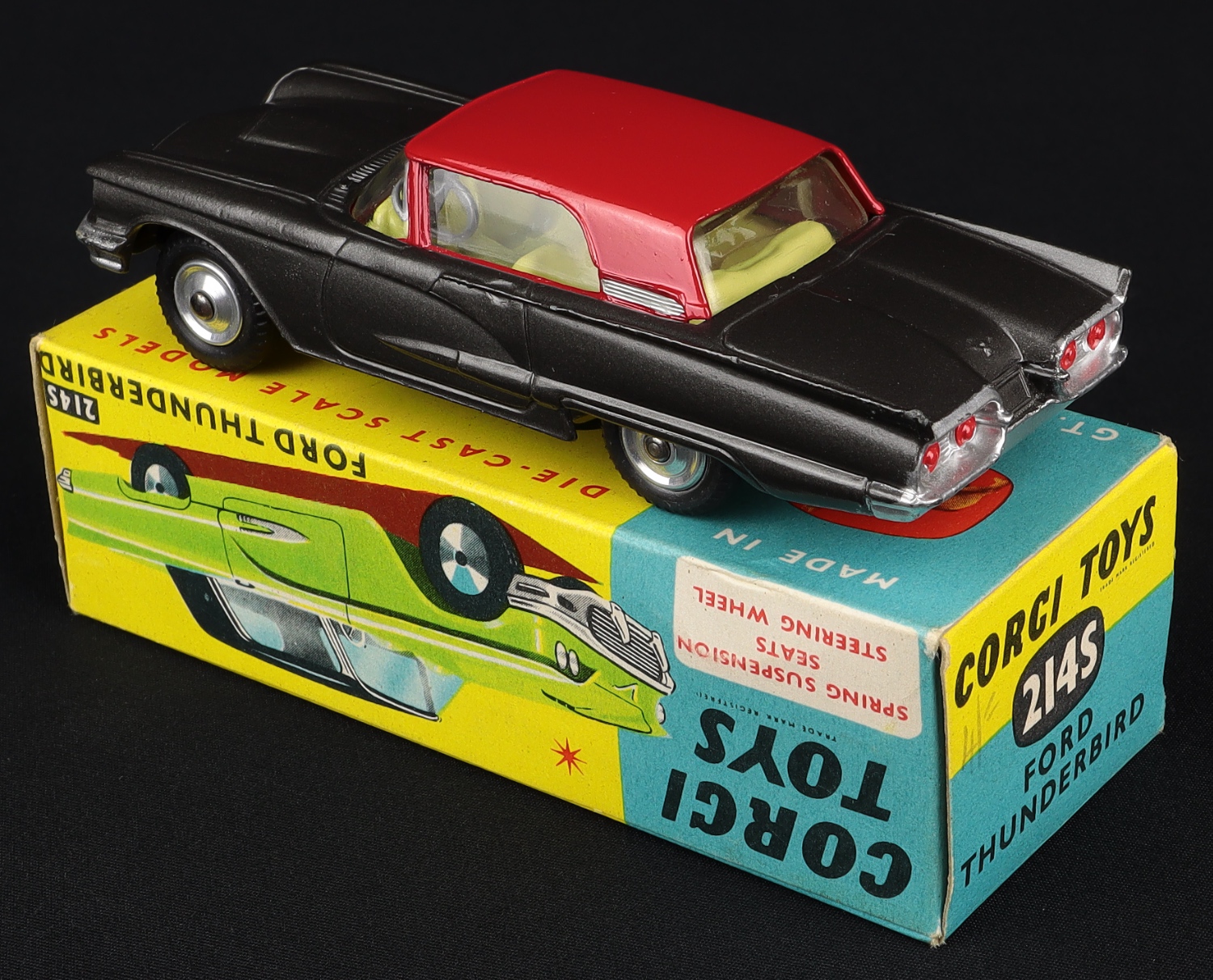 Ford Thunderbird Hardtop by Corgi Toys, No. 214S. Graphite grey & red. Very near mint/boxed. Nice box. From The Elmer Collection.