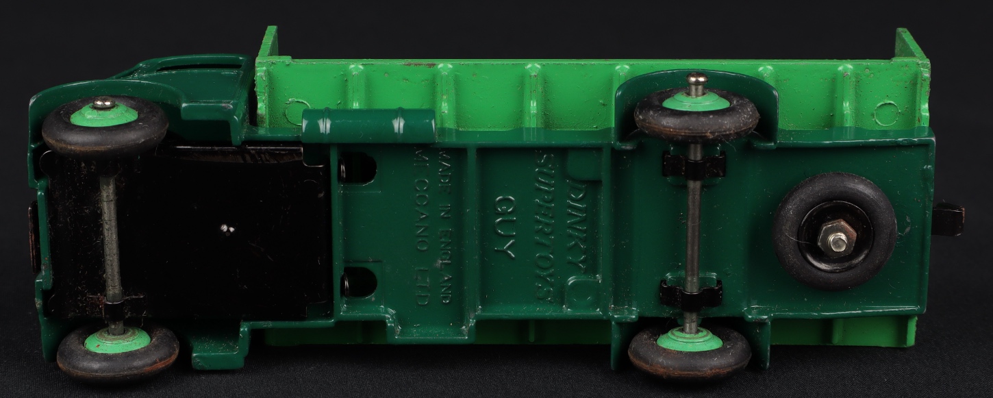 This early commercial Dinky Truck was made between 1948-52. First type dark green cab and chassis, mid green back, ridged hubs. In original condition throughout.