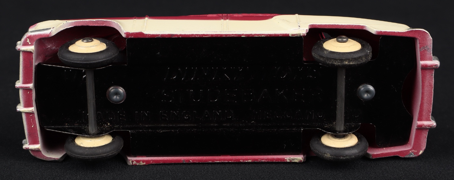 Studebaker Land Cruiser by Dinky Toys, No. 172. Lowline version. Cerise and cream with deep cream wheels. Very near mint/boxed. From The Anglo-French Collection.