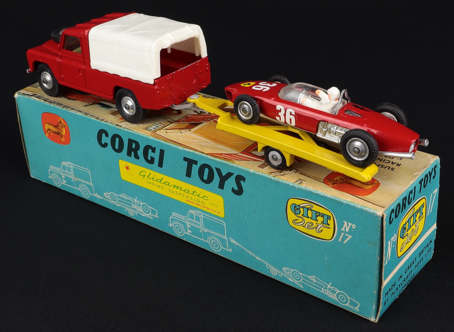 Corgi Toys Gift Set 17 Land-Rover with Ferrari Racing Car on Trailer