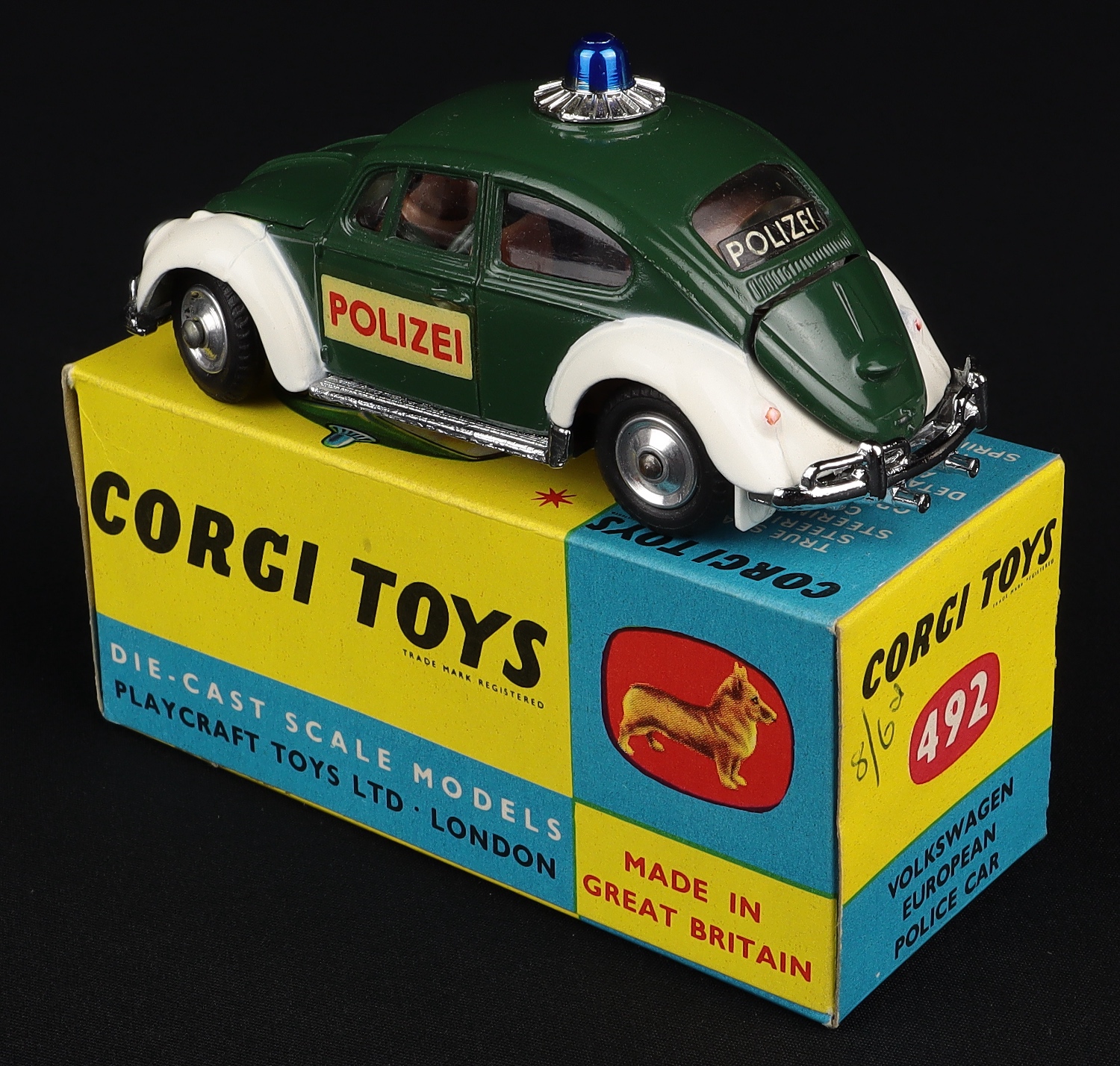 Volkswagen European Police Car ' POLIZEI' by Corgi Toys, No. 492. Very, very near mint/boxed, with both card packing rings. Nice box too! From The Elmer Collection.