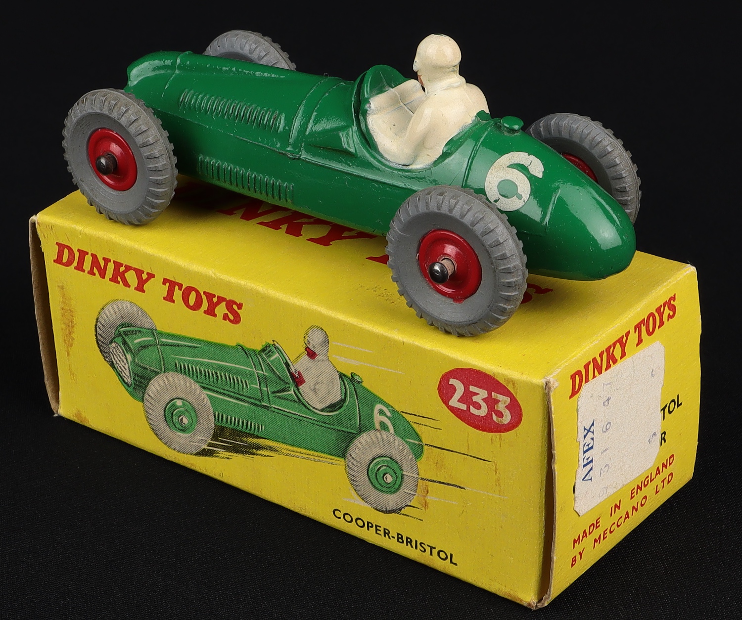 Cooper Bristol by Dinky Toys, No. 233. Near mint plus/boxed. Scarce version with red plastic wheels. From The Rickman Collection.
