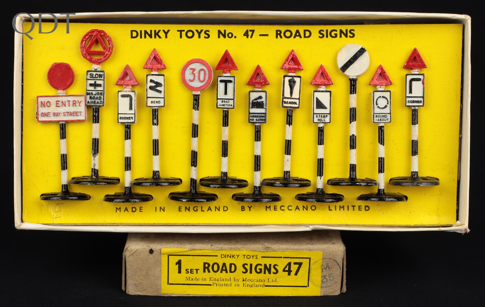 Road Signs by Dinky Toys, No. 47. Near mint plus - very near mint/boxed. Early issues! Plain lift-off lid box & Dinky 42A Police Hut. Near mint/not boxed. From a one owner from new collection. Starting bid £150. Please note that QDT apply 12.5% buyer's commission.