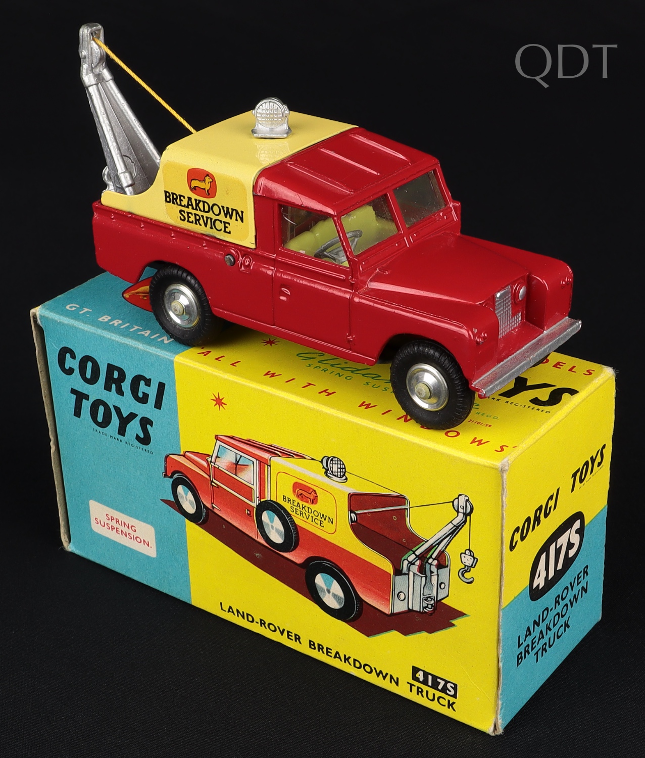 Land-Rover Breakdown Truck with suspension & tin canopy by Corgi Toys, No. 417S. Very near mint/boxed. From The Elmer Collection.