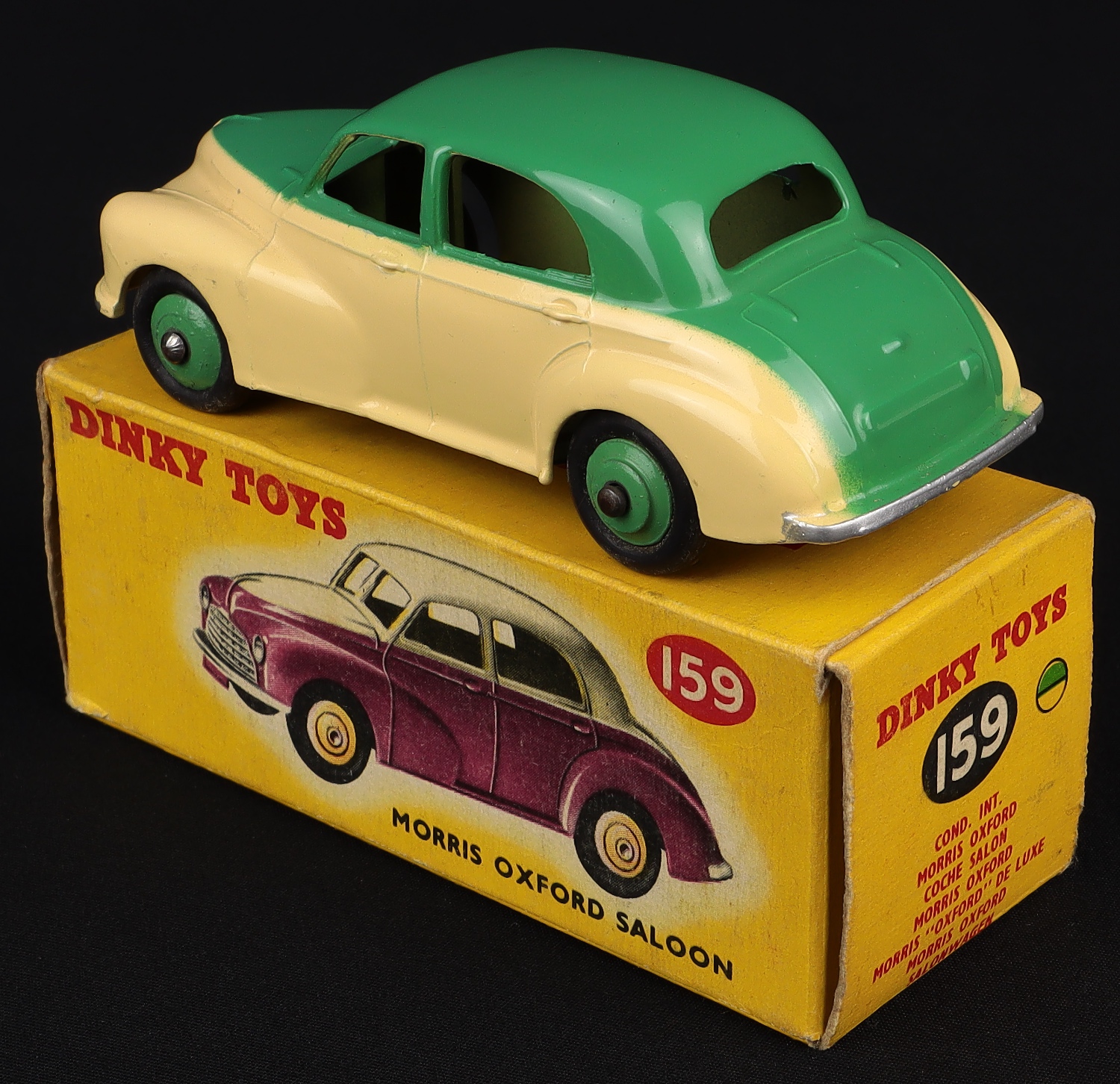 Morris Oxford Saloon by Dinky Toys, No. 159. Very, very near mint/boxed. Green & cream issue. Scarce. From The Reference Collection.