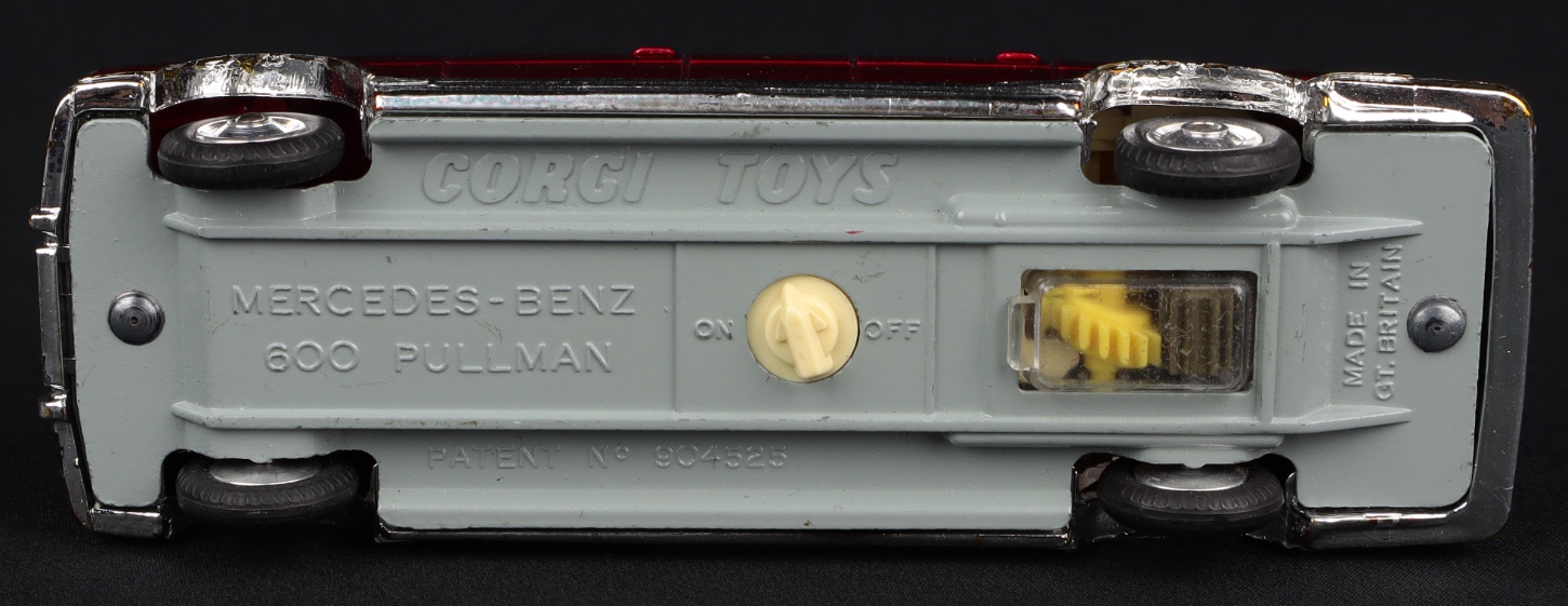 Mercedes Benz 600 Pullman by Corgi Toys, No. 247. Very near mint/boxed. Metallic ruby-red version. With intact bonnet emblem & Leaflet. From The Rickman Collection.