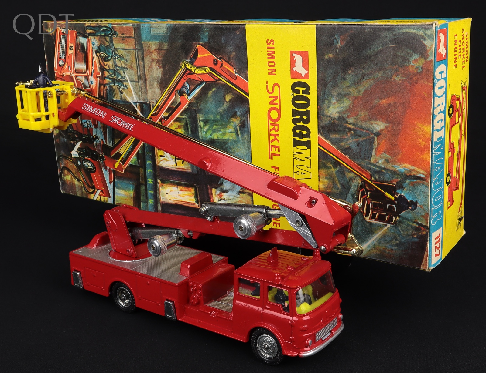 Simon Snorkel Fire Engine by Corgi Toys, No. 1127. Very near mint/boxed. A more difficult find in the early pictorial card and cellophane picture box. With leaflet. From The Elmer Collection.