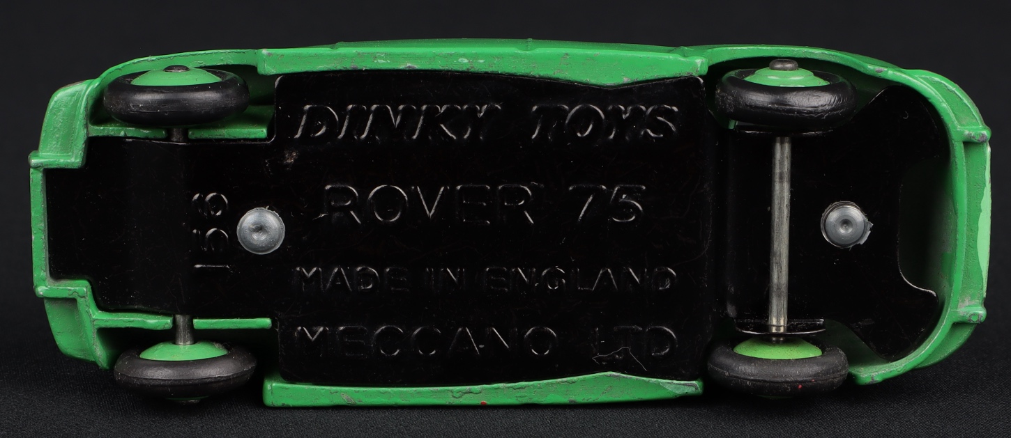 Rover 75 Saloon by Dinky Toys, No. 156. Two-tone green version. Scarce version with DARKER GREEN LOWER & LIGHTER GREEN UPPER. Large print baseplate. Very near mint/boxed. From The Reference Collection. Starting bid £200. Please note that QDT apply 12.5% buyer's commission.