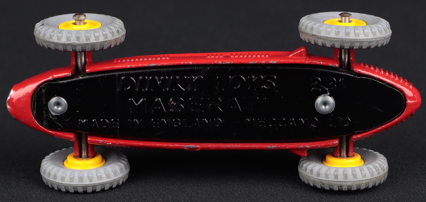 Maserati Racing Car by Dinky Toys, No. 231. Very near mint/boxed. Scarce issue with YELLOW PLASTIC wheels. From The Rickman Collection.