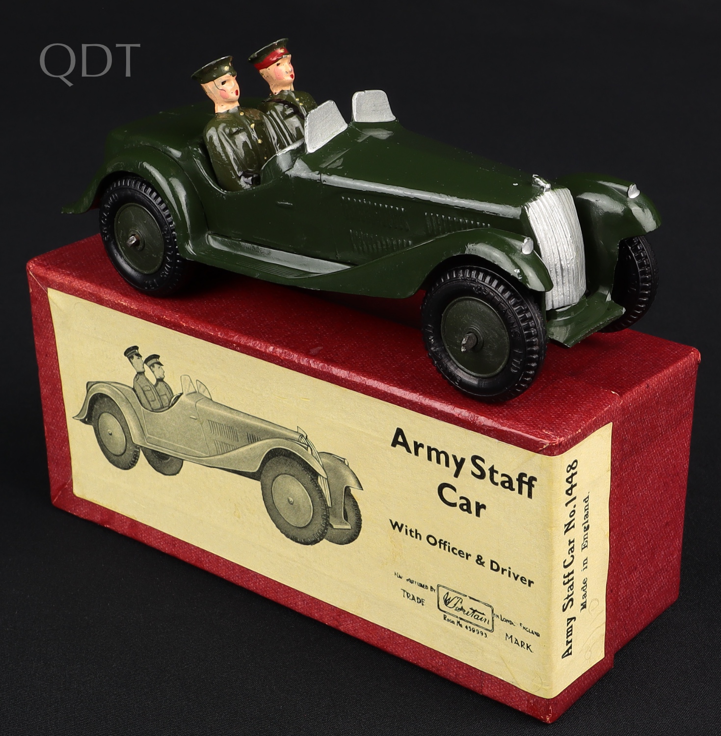 Staff Car by Britains Models, No. 1448. Very near mint/boxed. Scarce DEEP GREEN model from The Denis Tyler Collection. Super quality! QDT starting bid £150. Please note that QDT apply 12.5% buyer's commission.
