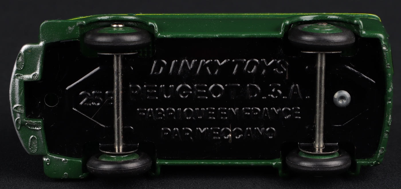 Peugeot Post Van 'POSTES' by French Dinky Toys, No. 25BV. Very near mint/boxed. Issue with Version in MID-GREEN, WIDE *POSTES* lettering in orange and ridged roof underside. From The Berlin Collection.