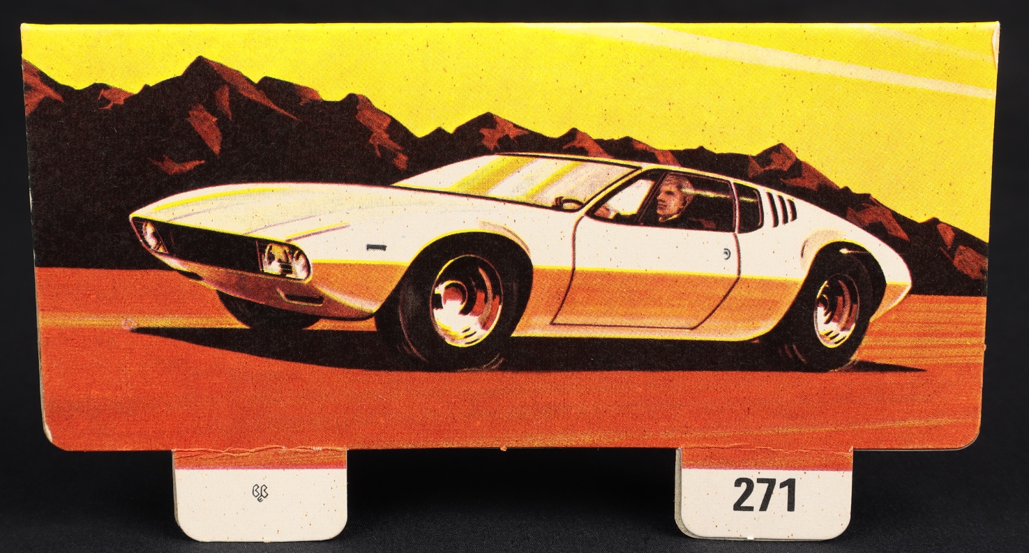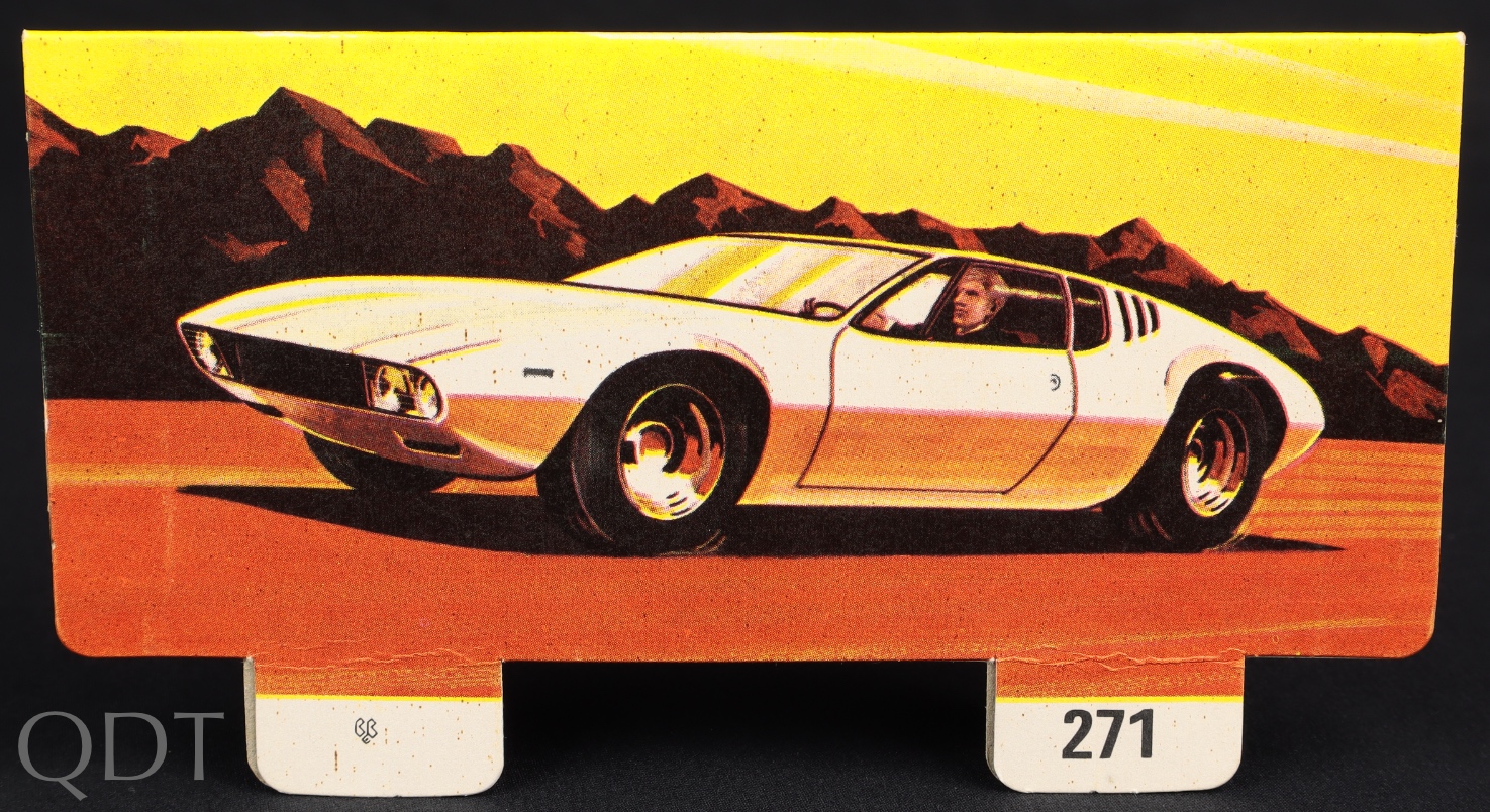 Original Header Card for Ghia 5000 Mangusta with De Tomaso Chassis by Corgi Toys, No. 271. Very near mint. Starting bid £200. Please note that QDT apply 12.5% buyer's commission.