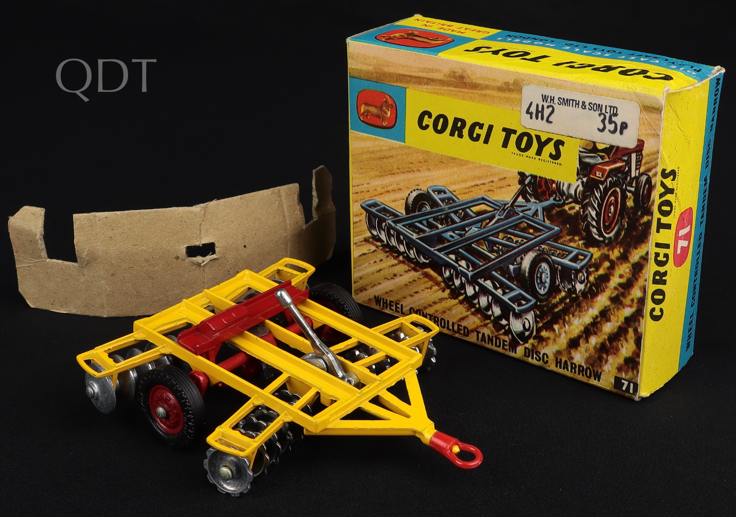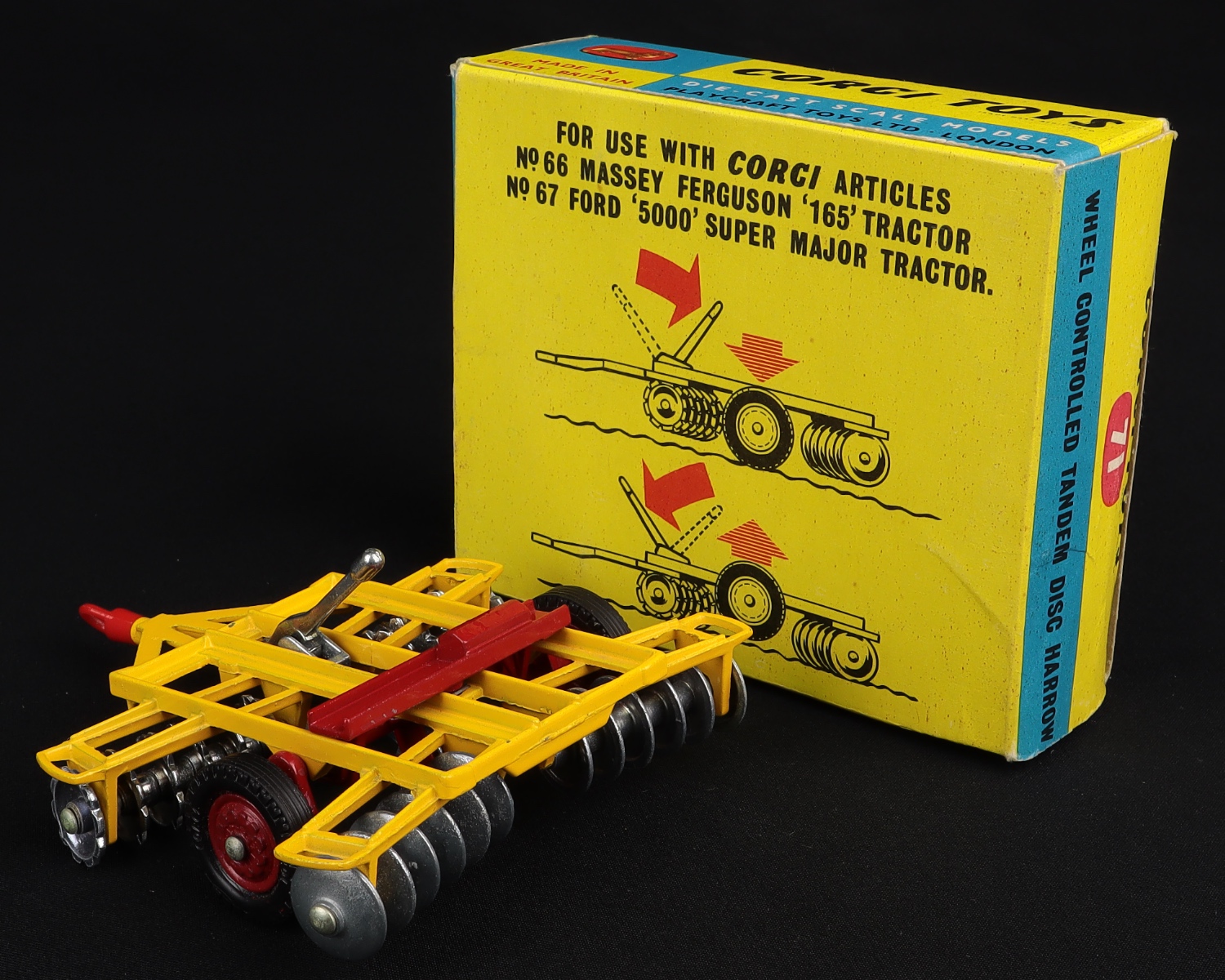 Wheel Controlled Tandem Disc Harrow by Corgi Toys, No. 71. Very near mint/boxed, with card packing. Nice box! From The Elmer Collection.