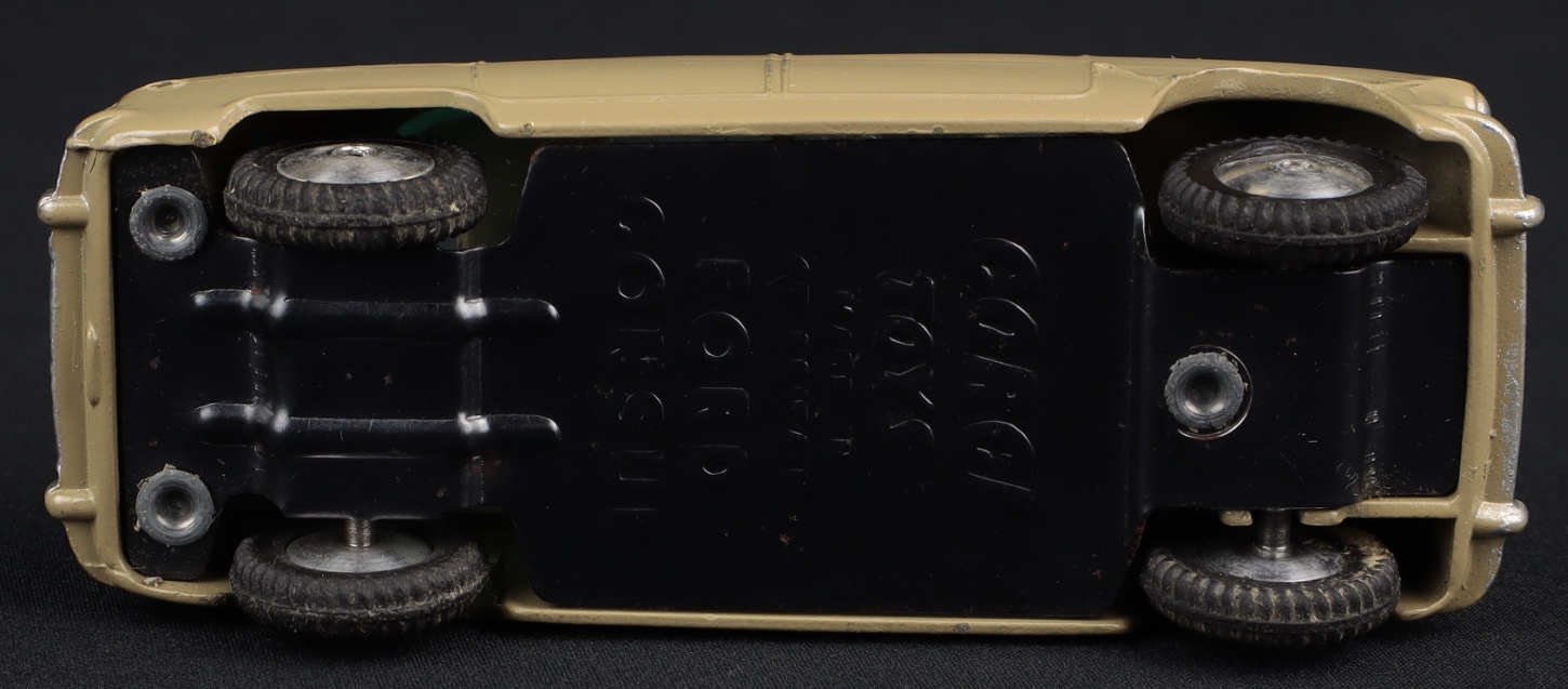 This early Corgi car has a gleaming light gloss fawn finish, clear window glazing and flat spun wheels.