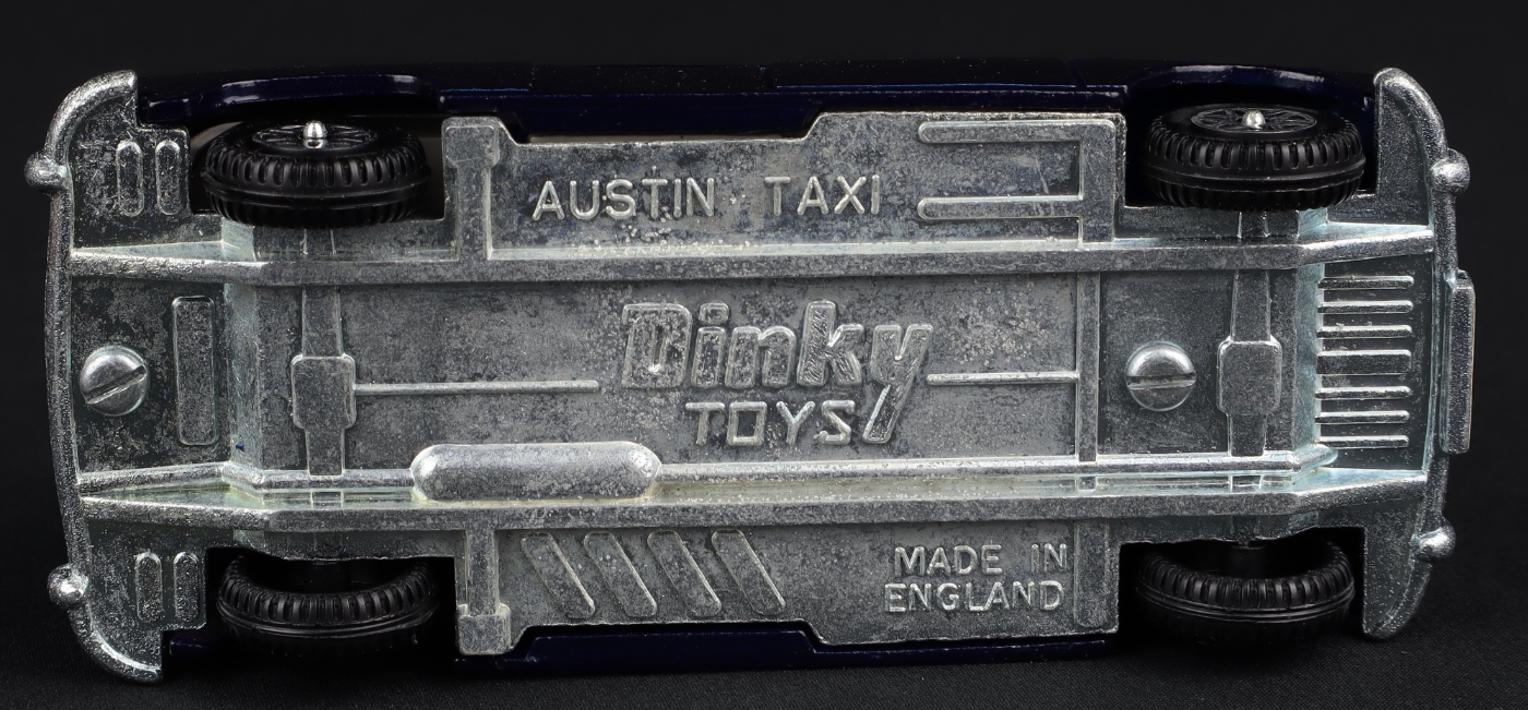 Old shop stock item surely! This London Taxi has a deepest navy blue finish with bright silver original detailing, jewelled lights and intact number plates/labels front and rear.