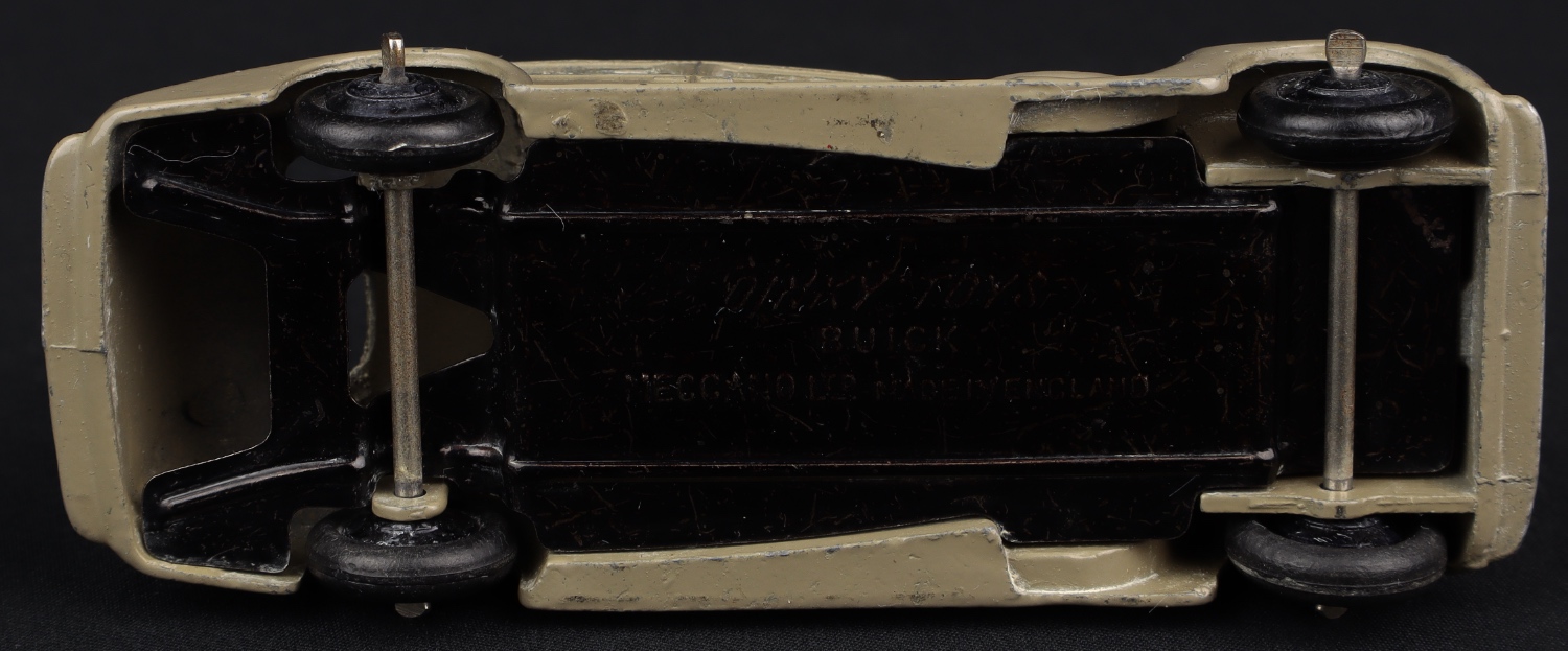 This Buick Viceroy model has a shining, original grey-fawn finish with a black baseplate and ridged hubs. Smooth original black tyres are well-shaped.