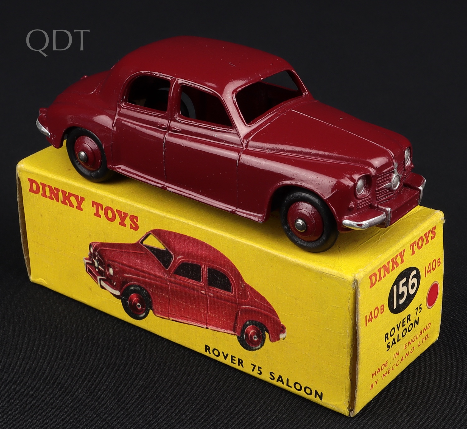 Rover 75 Saloon by Dinky Toys, No. 140B 156. REDDISH-MAROON with maroon wheels. Very near mint/boxed. From The Dutch-Hillman Collection.