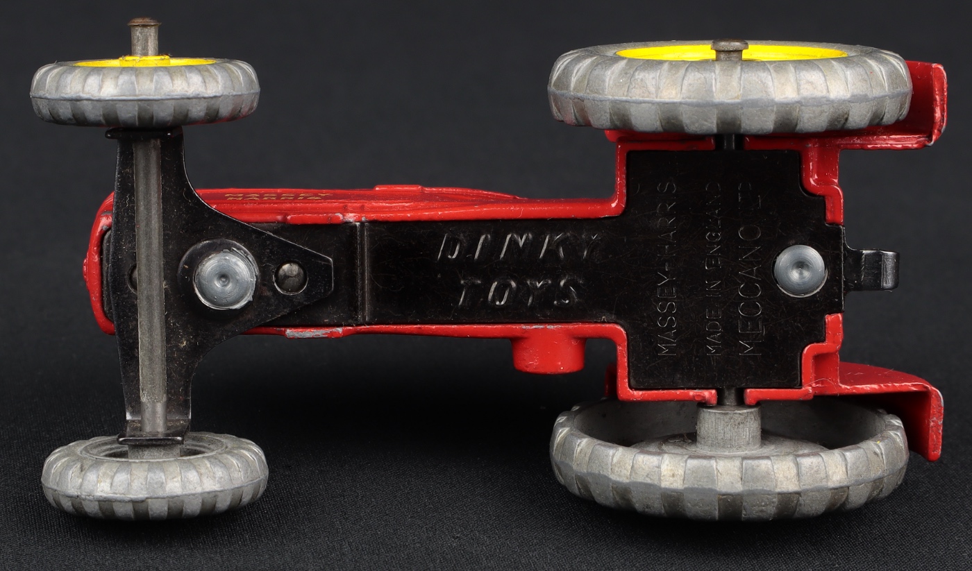 The models are all complete in bright red with drivers and are in near mint plus – very near mint condition (retouch to a couple but you have to be eagle-eyed to spot them). Each tractor has yellow cast wheels, steering wheel and hook at the rear. Each model has the Massey Harris transfers on the body of the tractor.