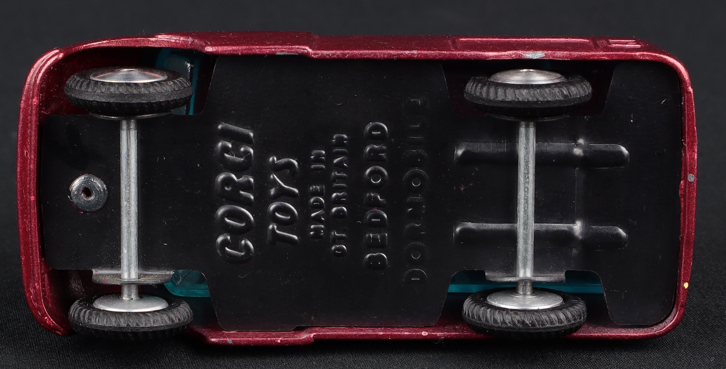 Bedford "Dormobile" Personnel Carrier by Corgi Toys, No. 404. Metallic deep cerise version. Very near mint/boxed, with booklet & pink Corgi Club Membership Form. Scarce. From The Dutch-Hillman Collection.