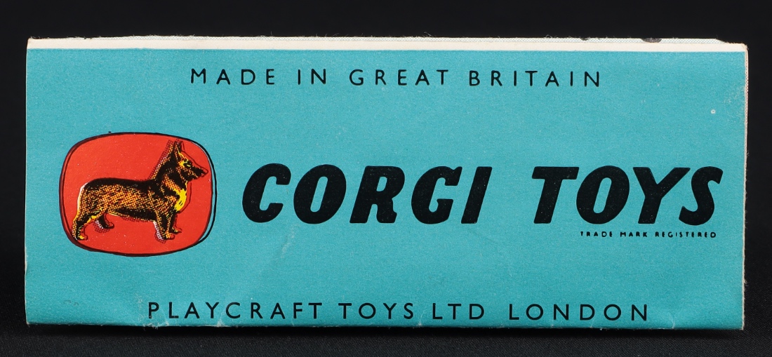 The early blue picture box is complete and intact with a crisp feel to the smooth card. Very light wear. With Corgi promotional booklet: