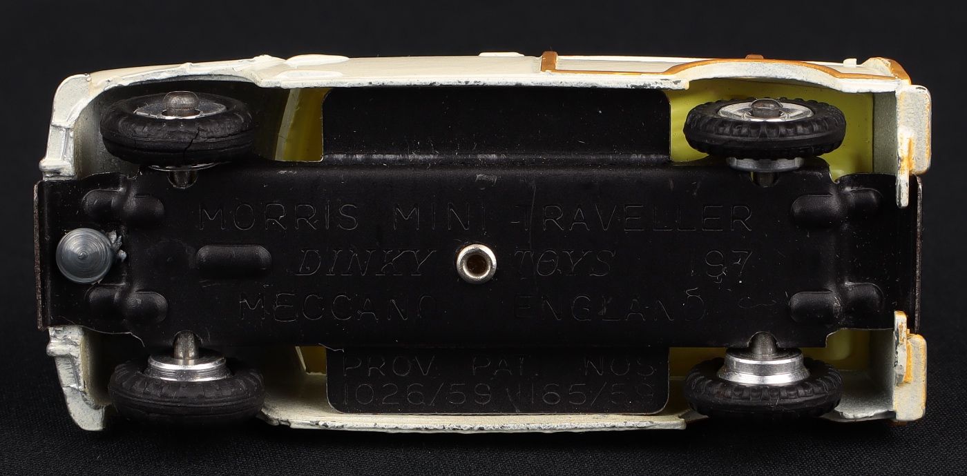 Morris Mini-Traveller by Dinky Toys, No. 197. Very, very near mint/boxed. Ivory version, with Morris grille, lemon interior, brown woodwork. Matte base. Scarce! Starting bid £300. Please note that QDT apply 12.5% buyer's commission.