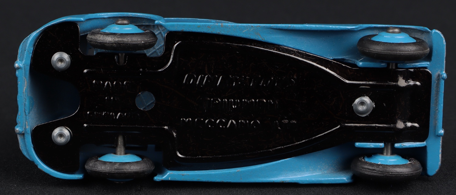 Early 151 issue in mid-blue with blue wheels. Small lettering and rails detail on baseplate (1954). Well-shaped smooth original tyres.