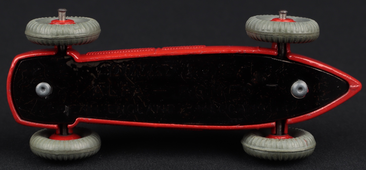 Alfa Romeo Racing Car by Dinky Toys, No. 232. Scarlet red version with NARROW racing numbers. With steel base & 23F stamped. Very near mint/boxed.
