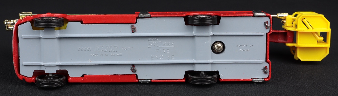 A popular Corgi model from the Major Packs Emergency Vehicle range of toys. The Simon Snorkel fire engine was made between 1964-74, with a Bedford cab, 6 firemen, water cannon, extending and rotating boom. This model presents very nicely with bright untarnished supports for the boom and a vivid lustre to the original paint finish.