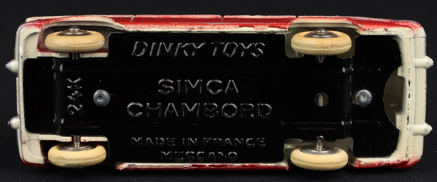 Simca Vedette "Chambord" by French Dinky Toys, No. 24K. Ivory & dark red issue. Near mint plus/boxed. From The Dutch-Hillman Collection.