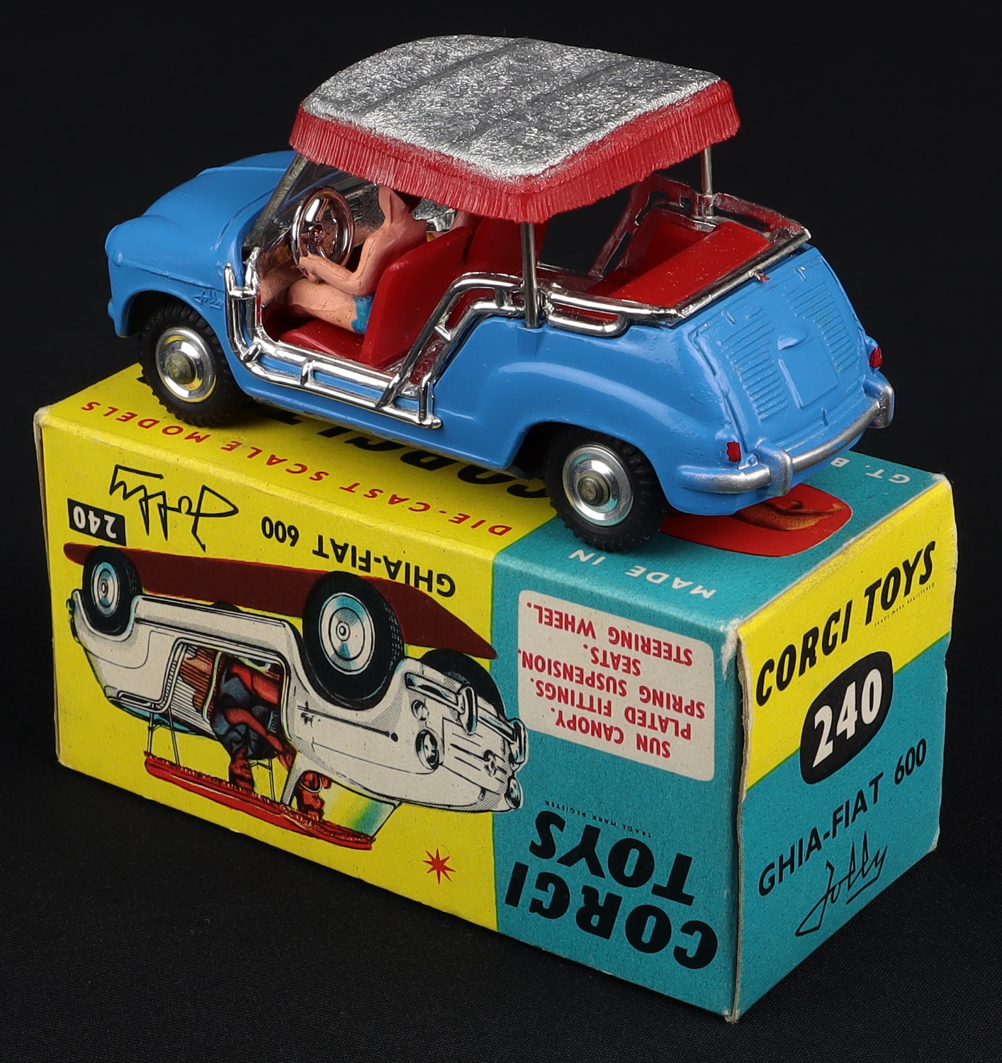 Ghia-Fiat Jolly by Corgi Toys, No 240. Mid-blue version. Very, very near mint/boxed, with card packing ring. From The Elmer Collection of Corgi Toys.