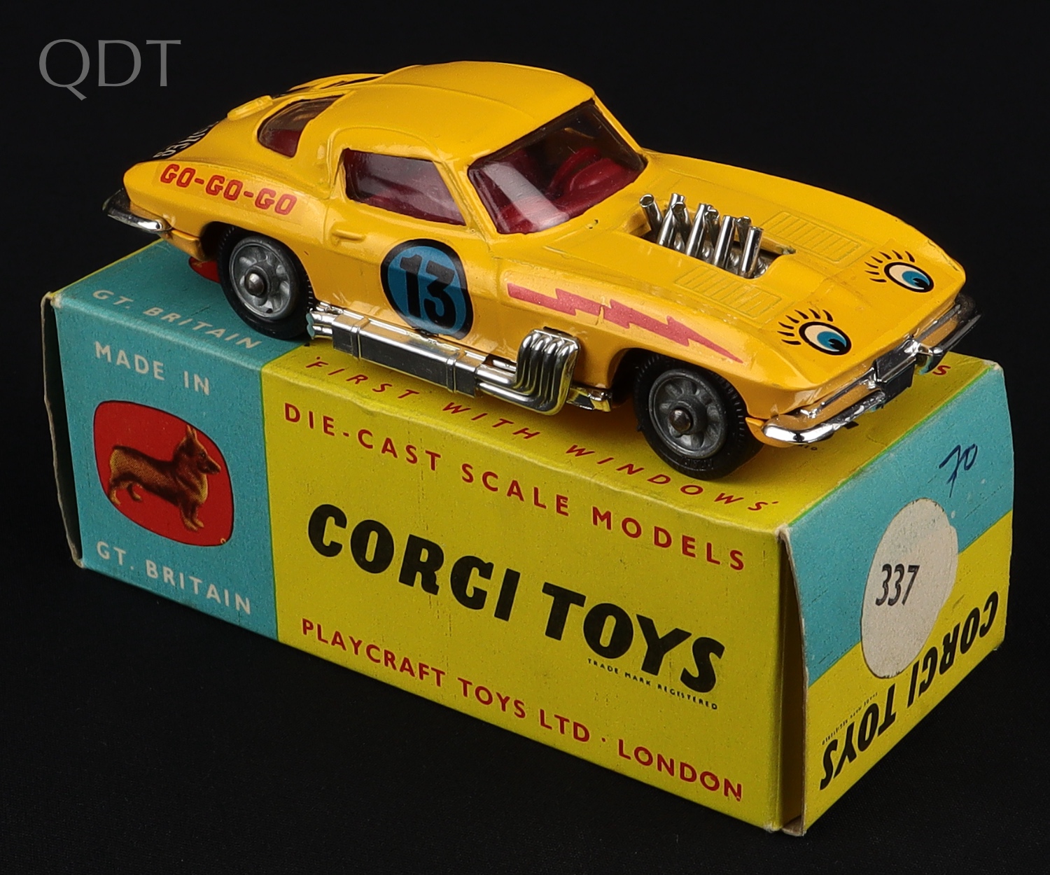 Customised Chevrolet Corvette Stingray by Corgi Toys, No. 337. Very near mint/boxed. PLAIN BOX. Only the 2nd for QDT! Another rare find from The Gower Collection. Starting bid £175. Please note that QDT apply 12.5% buyer's commission.