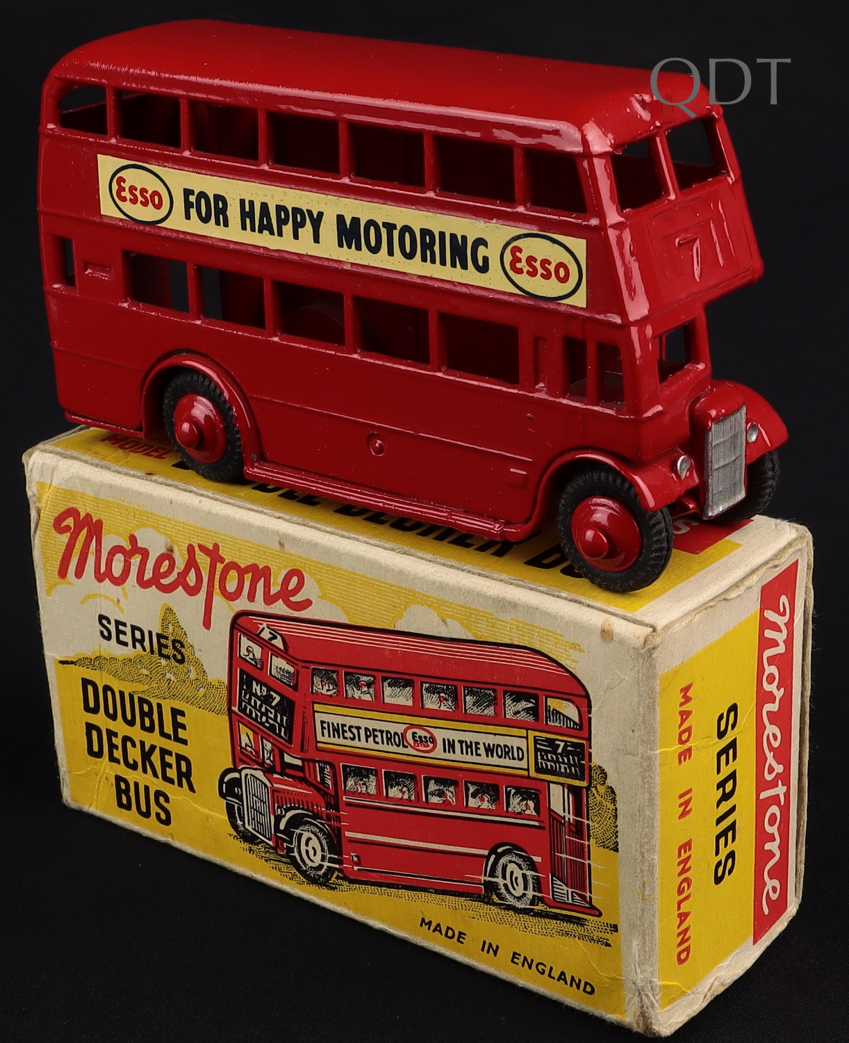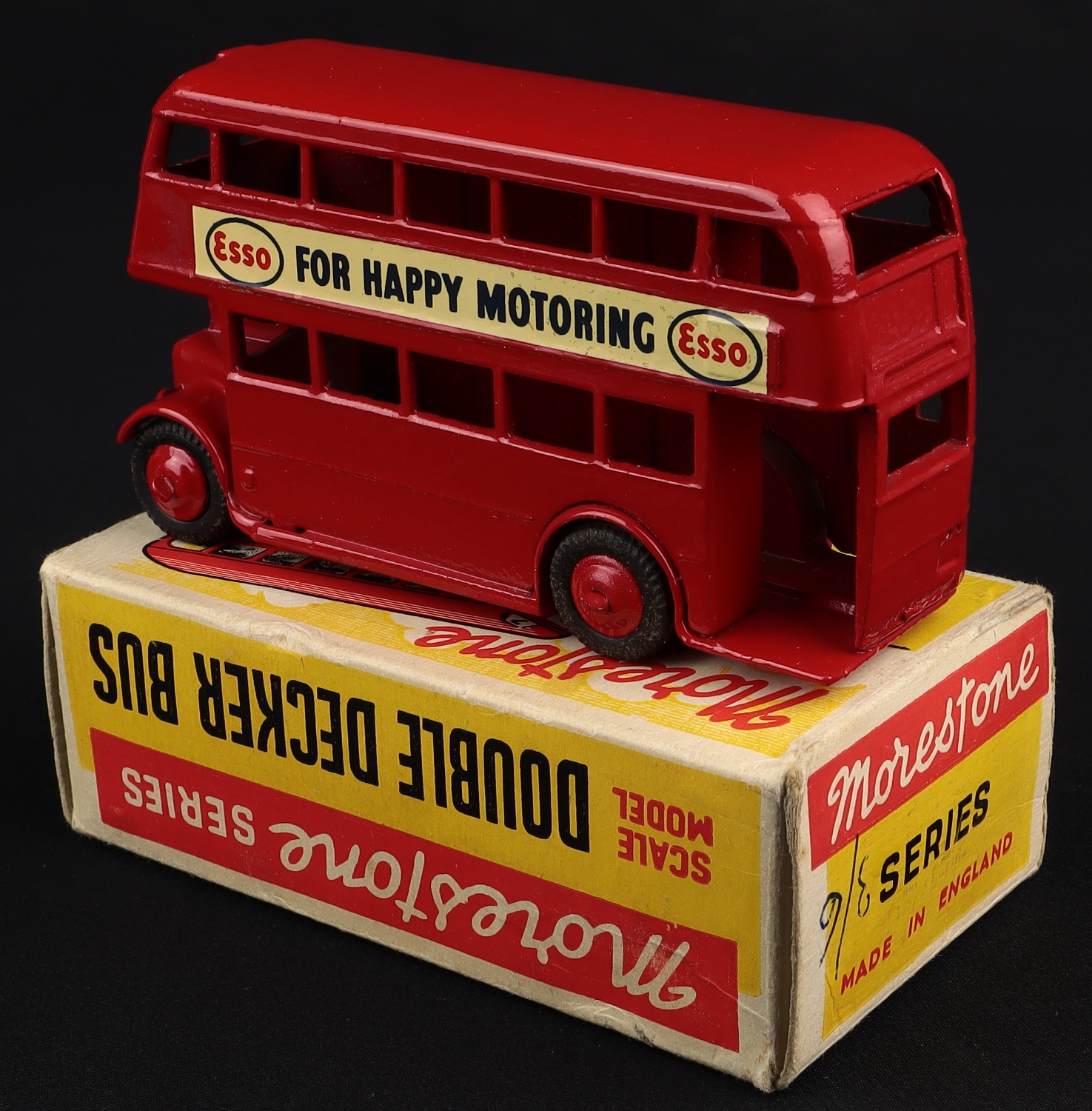 Double Decker Bus "ESSO FOR HAPPY MOTORING" by Morestone Series. Scarce. Very near mint/boxed. From The Denis Tyler Collection. Starting bid £100. Please note that QDT apply 12.5% buyer's commission.