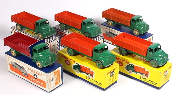 A selection of Dinky Leyland Comet Lorries with Hinged Tailboards, issued under the numberings 532, 932 & 418. In production from 1952-59.