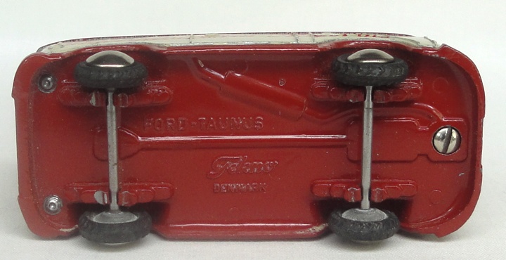 A difficult version to find, this Ford Taunus model is in fine, all original condition with a rich reddish-brown paint finish, a pale grey mid-section, shiny wheel/radiator/lights detail. Near perfect delicate transfers (a few tiny nicks) .