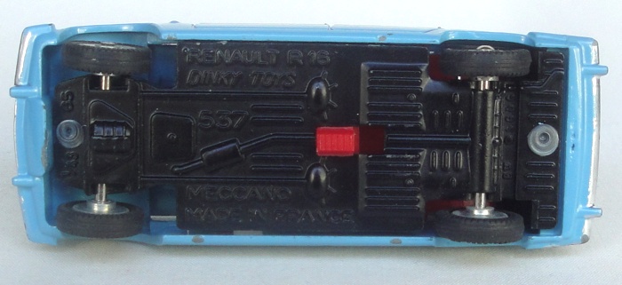 Issued between 1965-67, this Renault model has an attractive vibrant light blue finish with a vivid red detailed interior, original silver detailing, window glazing with rear view mirror and windscreen wiper detail. Bright concave wheels and black tyres with a fine tread, shiny black base.