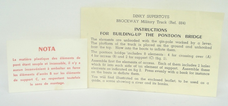 French Dinky 884 Brockway Bridge Layer. Near mint plus/boxed. Complete with all components (unused), inner packing and three pieces of literature. Never seen before with 5 spare, original 'stoppers' for the inflatable rafts! From The Reference Collection.