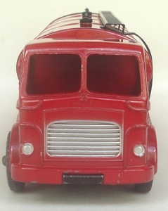 This sought-after classic Dinky tanker was issued between 1958-64, this being an early issue with diecast wheels. Vibrant, original red finish throughout. Tanker is tinplate with original transfers on both sides and at rear. Little speckled marking at the side transfers as well as a couple of small light scratches. Couple of tiny tope edge nibbles to the rear transfer.