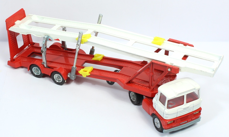 1) Corgi 1148 Scammell Car Transporter with a gleaming red and white with all four yellow fixing clips intact. Near mint condition – occasional very minor mark only. Looks unused.